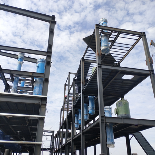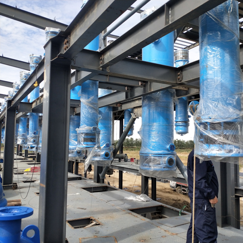 山東青島某化工有限公司訂購(gòu)的23臺(tái)1100㎡的圓塊孔式石墨換熱器、降膜吸收器和解析塔一臺(tái)
