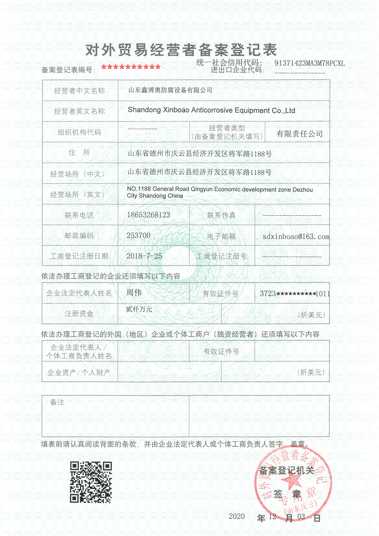 山東鑫博奧防腐設(shè)備有限公司是石墨換熱器、石墨降膜吸收器及石墨塔類(lèi)設(shè)備等石墨設(shè)備的專(zhuān)業(yè)生產(chǎn)廠家,具有A4級(jí)壓力容器(限石墨制)生產(chǎn)許可證、具備外貿(mào)進(jìn)出口經(jīng)營(yíng)許可證、辦理了兩用物項(xiàng)經(jīng)營(yíng)許可證,石墨類(lèi)設(shè)備出口手續(xù)齊全、合法。