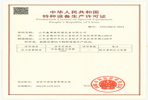 1)具有國(guó)家質(zhì)檢總局頒發(fā)的A4級(jí)非金屬壓力容器(限石墨制)生產(chǎn)許可證 ,擁有完善的設(shè)計(jì)和制造質(zhì)量保證體系。