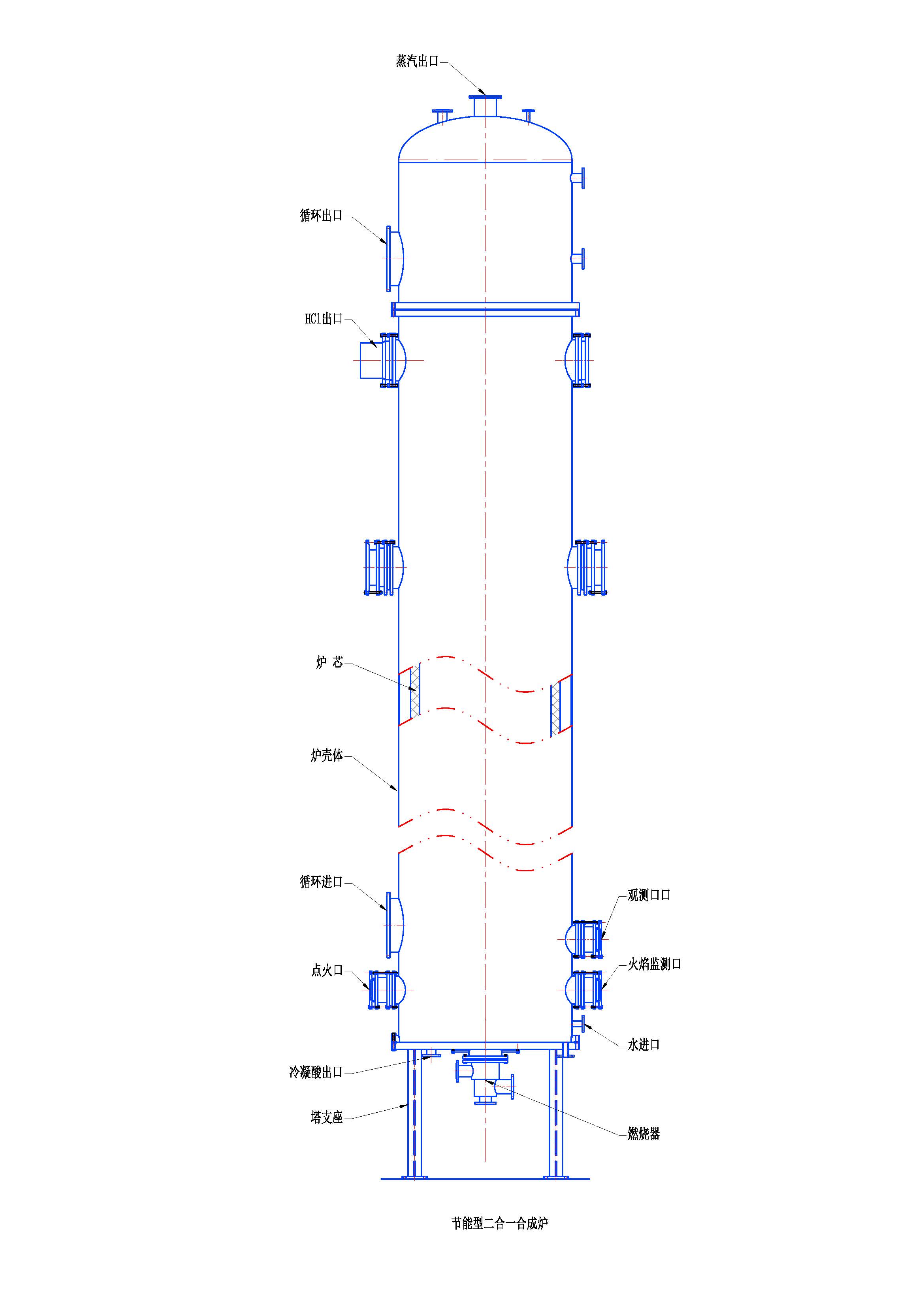該設(shè)備主要用于氯化氫氣或鹽酸合成外,還可用于含氯廢氣處理及P2O5生產(chǎn)。