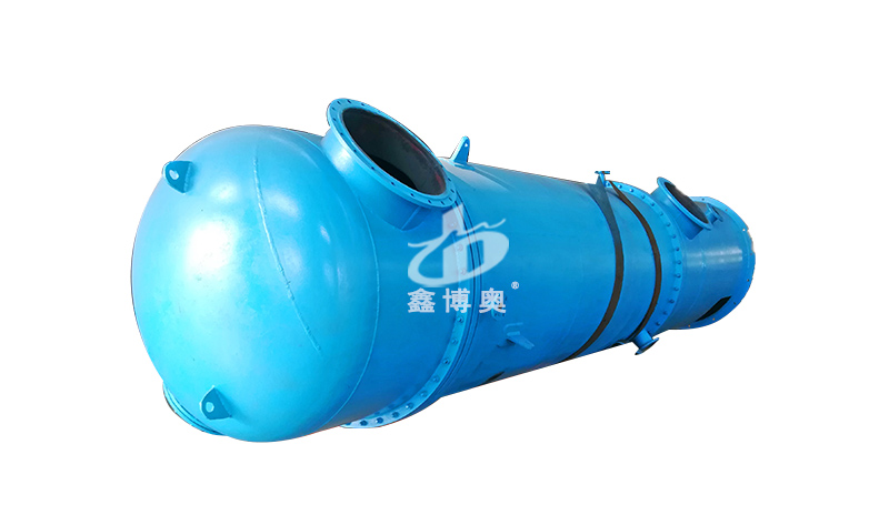 設(shè)備筒體和封頭采用碳鋼防腐,管板采用浸漬石墨,換熱管為改性酚醛樹(shù)脂壓型石墨管,管子與管板之間采用絲扣壓緊密封圈的方式,單管密封,性能可靠,更換維護(hù)方便。